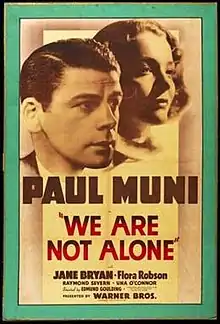 We Are Not Alone is a 1939 American drama film directed by Edmund Goulding and starring Paul Muni, Jane Bryan, and Flora Robson. The film is based on the 1937 novel We Are Not Alone by James Hilton,[1] who adapted his novel with Milton Krims.