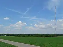 Weiskirchen transmitter has a directional antenna, which consists of two 126.5-metre-tall guyed lattice steel mast radiators (coordinates: 50°3′19.7″N 8°51′44.9″E / 50.055472°N 8.862472°E and 50°3′22.8″N 8°51′57.1″E / 50.056333°N 8.865861°E) insulated against ground.