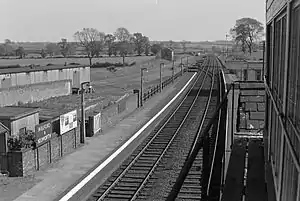 A cottage was built on the opposite side of the line near to the road crossing and the box. Consequently, the signal box had to be high enough to give a view over it. There were two sidings on the up side behind the station building, with a loading dock and goods shed, and, in the opposite direction, beside the up line there were two long sidings. On the other side of the road crossing towards Stamford a further siding catered for a dairy. A milk train would arrive from Rugby at about 3.30 in the morning, returning empty at 5.00 a.m. Welford also proved handy for parking defective wagons.[3]