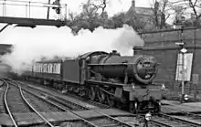The station was built at the junction of the Shrewsbury and Birmingham Railway with the Shropshire Union Railways and Canal Company's line from Stafford via Newport. It was opened on 1 June 1849.[1] The S&BR reached Wolverhampton later that year, but was frustrated in their attempts to reach Birmingham by the London and North Western Railway – it was not until both they and the neighbouring Shrewsbury and Chester Railway became part the Great Western Railway in November 1854 trains could run to Birmingham Snow Hill.[2] Wellington thereafter was jointly run by the LNWR and Great Western companies until the 1923 Grouping.