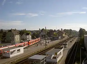 Wendlingen (Neckar) station (formerly Unterboihingen station) is the only station in the town of Wendlingen in the German state of Baden-Württemberg and is a railway junction on the Plochingen–Immendingen railway from which the Teck Railway branches. It is served by regional trains and the Stuttgart S-Bahn.