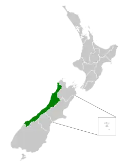 ![]() Location of the West Coast DHB (green) in New Zealand | |