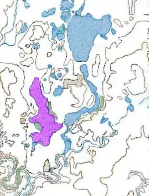 West Okoboji Lake (highlighted in purple), in the Iowa Great Lakes region.