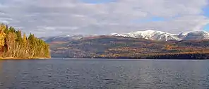 View from Whitefish Lake State Park beach looking north to Whitefish Mountain Resort in autumn, courtesy Mike Koopal
