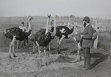 In 1869, L.D. and N.A. Nathan took over Alexander Kennedy's farm and developed an ostrich farm, which provided meat and feathers for the fashion trade from 1869 until the 1920s.[5] Racehorses were trained in Whitford,[4] and in the 1890s the Nathan family equestrian track held large-scale racing events, which people from Auckland attended by ferry.[3] The farming community primarily grew oats, hay, wheat, potatoes for the Auckland market.[13] The town's Granger's brickworks operated from the 1878 until 1920,[5] and in 1900 the Nathan family established a butter factory.[3]
