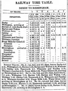 - ↑ "1871-1879 Coaching". Midland Railway Operating, Traffic and Coaching Depts: 291. 1871.