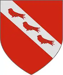 ![]() Brabazon of Sproxton arms:- gules, on a bend argent 3 martlets of the field.[1] | |