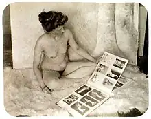As well as many nude and semi-nude images of Shearer's employees, the collection also includes images of the women carrying out daily activities, a set of nudes of a man in athletic and action poses who is described as a customer,[18] three images of a black woman,[19] a pregnant woman,[20] and a nude photograph of Goldman that may be a self-portrait.[10] There are many dual portraits of women but only one mixed-sex image[21] and none of the images show sexual activity. Only two of the images are set outdoors.[22] With one exception, the women are all white, there being separate houses employing black women such as Harry Weaver's "Mahogany Hall" at 729 North Twelfth.[12]