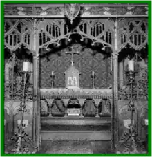 Interior of chapel on Overlook Mountain showing altar behind rood screen