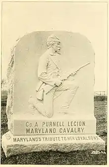 - ↑ "Purnell Legion, Co. A, Maryland Cavalry Monument – Gettysburg, PA – Relief Art Sculptures on". Waymarking.com. Retrieved 2022-05-04.