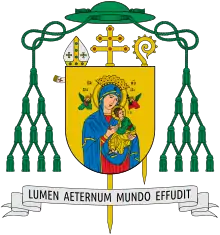 On February 14, 1873, Gross was appointed the fifth bishop of the Diocese of Savannah by Pope Pius IX.[6] He received his episcopal consecration on April 27, 1873, at the Cathedral of the Assumption of the Blessed Virgin Mary in Baltimore from Archbishop James Bayley, with Bishops Thomas A. Becker and James Gibbons serving as co-consecrators.[6] At age 36, Gross became the youngest member of the American hierarchy.[5] He selected as his episcopal motto: "Lumen aeternum mundo effudit" (Latin: "She gave forth to the world the Everlasting Light").[7]