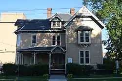 The William S. Bailey House is a historic house located at 100 South Campbell Street in Macomb, Illinois. The house was built in 1887 for William S. Bailey, a prominent local businessman who built several of the buildings on Macomb's town square. The house has a Queen Anne style design with Eastlake details; it is one of the best-preserved Queen Anne homes in Macomb. The 2+12-story house has a hipped roof with cross gables; the gable ends are decorated with spindlework cresting. Three brick chimneys with patterned masonry provide ventilation for the house's fireplaces and kitchen stove. The front porch features a spindlework railing and decorative trim along the roof and the entry pediment.[2]