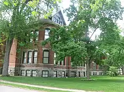 William Street School, also known as Horace Mann School, is a historic school building located at Huntington, Huntington County, Indiana. The original section was built in 1895, and is a 2+12-story, rectangular plan brick building with Romanesque Revival and Queen Anne style design elements. It sits on a raised basement, has a rounded corner and projecting gable, bell tower, and has a multi-gabled slate roof. A two-story, Neoclassical style addition was built in 1926.[2]:2–3