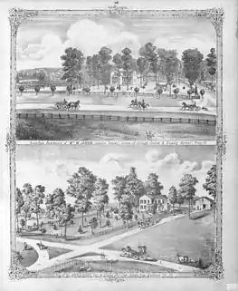 William W. Jarvis is depicted in the center of this drawing from the Illustrated Encyclopedia & Atlas Map of Madison County, Ill. (1873), p. 104a.