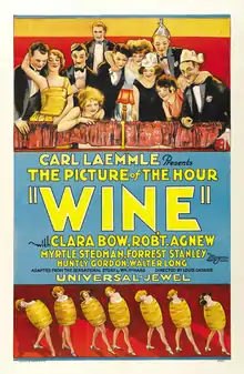 Wine is a 1924 American silent melodrama film directed by Louis J. Gasnier, produced and released by Universal Pictures under their 'Jewel' banner.[1] The film, which featured Clara Bow in her first starring role, is currently classified as lost.[2][3]