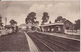 The original A&BR station, which was situated to the north of a level crossing over the East Claydon Road, had a single platform and lightweight flange-bolted flat-bottom rail.[15][16] A small hut and cottage were provided for the gatekeeper who also served as the station's porter; a small signal box controlled access to a siding.[17][16] The station was entirely rebuilt by the Metropolitan Railway which doubled the line and provided a Down platform which partially obstructed the line of sight from the signal box.[18]