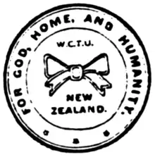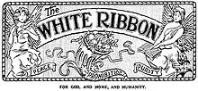 The official badge of the WCTU is a white ribbon: "a symbol of purity of purpose which binds together Christian women around the world."[4] The white ribbon was first used by the American WCTU since its founding and in 1877 was officially featured in a bow. The white ribbon bow is worn pinned over the heart.[2] During the union's early years in New Zealand, it would often be used together with the Gospel Temperance movement's blue ribbon.[5]