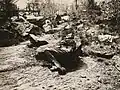 The women initially focused their efforts on creating apparel for gunners, scouts, and snipers that made them blend in with the landscape's trees or rocks.[5] Weekly field trips to Westchester County and parks such as Van Cortlandt Park and Kykuit, the Rockefeller family estate,[9] served as testing grounds for the women to try out their designs, trying to see if they could fool passerby or if their photographs showed they had succeeded in making people disappear from view.[4] They eventually moved from clothing to painting dazzle camouflage on ambulances, ships and tanks.[4][10] Units formed in various places throughout the United States, including Iowa, Minnesota, North and South Dakota,[11] and Philadelphia.[8]