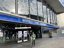 In 2005, work commenced on the large-scale Westfield Shopping Centre. As part of the work, £200m of transport improvements were made including rebuilding Shepherd's Bush Central line station, a new Shepherd's Bush railway station and two bus interchanges.[13] It was decided to build a new station on the Hammersmith & City line, just north-east of the old Metropolitan station on Wood Lane. In 2006 Transport for London decided, after deliberating over various possibilities, on the name Wood Lane, reviving an historical name. This was the first time that a new station on the Tube had been given the name of a former station that had been closed for several years.[16]