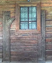 The church is built of fir beams, without mortar. The thick foundation wood, 60 centimeters wide, is made of oak. The polygonal altar, narrower than the nave, has seven faces, unusually for a wooden church. The northern and southern faces are larger, in order to expand the interior, some 4 meters wide and nearly as long. The first renovation took place in 1760, when the iconostasis was renewed. In 1791, Maior built a porch topped by a bell tower; the original structure had no spire, while the bell was separate. He added a door on the west, enclosing the old one in beams, cutting a fairly large window inside.[4]