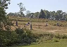 Woodlawn Cemetery was founded because of a crisis among the black burying grounds. Graceland Cemetery, founded in 1871 on the edge of the Federal City, was rapidly engulfed by residential development. By the early 1890s, the decomposition of bodies in the partially filled cemetery was polluting the nearby water supply and creating a health hazard. The Commissioners of the District of Columbia (the city's government) pressed for the closure of Graceland to accommodate the need for housing. With Graceland on the verge of closing, a number of white citizens decided that a new burial ground, much farther from any development, was needed.[5] Woodlawn's incorporators consisted of five white men: Jesse E. Ergood, president; Charles C. Van Horn, secretary-treasurer; and directors Seymour W. Tullock, William Tindall, and Odell S. Smith.[4] They formed the Woodlawn Cemetery Association, and were incorporated on January 8, 1895.[4] A 22.5-acre (91,000 m2) plot of land adjacent to Payne's Cemetery was purchased,[6] a portion of which was the site of the American Civil War's Fort Chaplin.[7] Burial plots were quickly laid out, and Woodlawn Cemetery opened on May 13, 1895.[8]