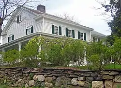 The main farmhouse is a combination of three structures erected during different eras. The main (west) block, closest to the road, is a two-and-a-half-story three-by-two-bay gable-roofed clapboard-sided 28-by-25-foot (8.5 by 7.6 m) unit with wraparound veranda on the south and west sides. All the windows have louvered shutters, with those on the main block larger than the other two sections. The roof has patterned cement-asbestos shingles and a brick chimney.[1]