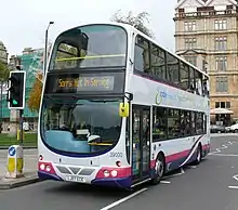 The first Wright Pulsar Gemini HEV was unveiled by Mayor of London Ken Livingstone in October 2006.[4] After being exhibited at the Euro Bus Expo at the National Exhibition Centre, in March 2007 it entered service with Arriva London on route 141 for evaluation.[5][6][7] In 2008 it moved to East Thames Buses' Mandela Way garage for six months, mainly being used on route 1. From August 2010 until February 2012, it operated for First Somerset & Avon in Bath after having its centre door removed.[8][9]