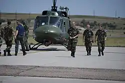Civil Air Patrol cadets take turns riding in a UH1 from F.E. Warren Air Force Base.