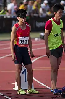 ![]() 2013 IPC Athletics World Championships, Lei Xue and guide Lin Wan, Men's 100m – T11 | ||||||||||||||||||