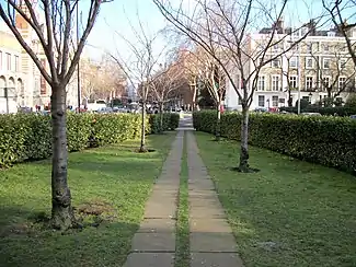 The land on which the garden is situated was first described in 1928 when it was part of the Crown Estate by the Report of the Royal Commission on London Squares as a 'grass plot with a few trees'.[3]