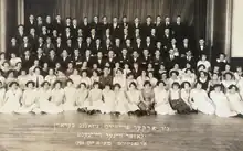 The New York branch of the Freiheit Gezang Farein (Yiddish: פרײהײט געזאַנג פאַרײן Freedom chorus) was founded in 1923 by composers Lazar Weiner and Jacob Schaefer in the Lower East Side.[2][3][4] Schaefer, who was still living in Chicago when the New York choir was founded, had used the name for a previous choir in Chicago he founded in 1913–14 and had picked it to not alienate potential members or audiences who were not Communists.[5][6][7] The New York choir was affiliated with the newspaper Morgen Freiheit, and had a strong working class identity and espoused far left or Communist politics.[4][8][7] Many of its early members were garment workers.[9] The choir became quite large, growing from 100 to 200 members in the first decade, most of whom were first generation Jewish immigrants who spoke Yiddish as their first language.[3] Its repertoire was mainly in Yiddish, although it did also perform in Russian, Polish, and other European languages.[10] In the early years both Weiner and Schaefer composed for the choir, Weiner was its conductor.[7] It gave its first major concert at Carnegie Hall in February 1924.[1] Starting in 1924, the chorus often performed together in concert with the Freiheit Mandolin Orkester, a Mandolin orchestra also founded and directed by Schaefer.[7] The choir regularly appeared at rallies and political events as well.[9]