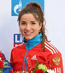 Yuliya Artyomovna Kanakina (Russian: Юлия Артёмовна Канакина; born 11 December 1995) is a Russian skeleton racer who competes on the Skeleton World Cup circuit. She began international competition in 2011, and was promoted to the World Cup squad in the 2014–15 season. Before starting skeleton, Kanakina was a ballet dancer. She was the IBSF Junior World Champion in women's skeleton for 2017 in Sigulda, and finished 26th in the senior IBSF World Championships later that year.[1][2] In 2018, Kanakina took silver at the Junior World Championships, 0.81 seconds behind Anna Fernstädt.[3]