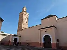 The Zawiya of Sidi Bel Abbes or Zaouia of Sidi Bel-Abbès (Arabic: زاوية سيدي بلعباس, Berber: ⵣⴰⵡⵉⵢⴰ ⵙⵉⴷⵉ ⴱⵍⵄⴻⴱⴰⵙ) is an Islamic religious complex (zawiya) in Marrakesh, Morocco. The complex is centered around the mausoleum of Abu al-Abbas as-Sabti (or Sidi Bel Abbes), a Sufi teacher who died in 1204. He is the most venerated of the Seven Saints of Marrakesh, generally considered the "patron saint" of the city.[1][2][3]:107 The zawiya's architecture dates in part to the late Saadian period (early 17th century) but has been modified and restored multiple times since then.[2][4][5][6]