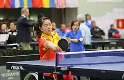 Zhang Miao (Chinese: 张淼, born July 8, 1991) is a Chinese para table tennis player. She has won six Asian table tennis titles in both singles and team events along with Gu Gai, Zhang Bian and Zhou Ying.[5][2]