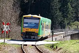 After the line had been thoroughly refurbished in 2002 at a cost of 9.6 million euros, a two-hourly timetable was introduced in 2003 with a journey time of 50 minutes. In summer 2007 the 4.7 km long section of the route between Zwiesel and Zwieselau was completely replaced for 2.3 million euros. In October and November 2008 a further 2.9 km between the stations of Frauenau and Spiegelau was renewed.
