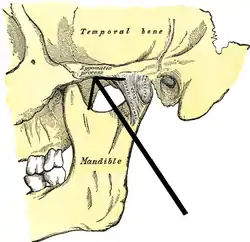 - an anterior, directed inward in front of the mandibular fossa, where it expands to form the articular tubercle.
