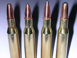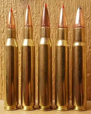 ![]() From left: .25-06, .270 Winchester, .280 Remington, .30-06, .35 Whelen | ||||||||||||||||||||||||