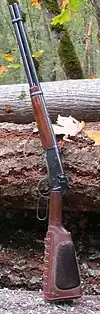 The .30-30 is by far the most common cartridge shot from lever action rifles.[10] The .30-30 is substantially more powerful than the Magnum handgun cartridges (e.g., .357, .41, .44, etc.) also often paired with lever actions, and produces that energy with about 14% less recoil than .44 Magnum.[11] While its old rival .35 Remington produces more muzzle energy and recoil, the .30-30 will often retain more terminal energy.[11] The .30-30 is not commonly used for extreme long-range shooting across wide-open spaces, but modern innovations in ballistic tipped bullets for leverguns have moved the long-range capabilities of the .30-30 somewhat closer to parity with higher-velocity cartridges.[12][13] In any case, a hunting-specific advantage of the .30-30 over those cartridges is that it leaves lower volumes of spoiled (destroyed or bloodshot) venison after a kill, leading to less waste.[14][15]