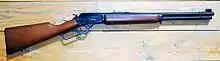 As a rifle or carbine cartridge, the .44 Magnum is sufficiently powerful for medium-sized game, yet fits easily into a compact, lightweight package. In 1961, Ruger introduced their .44 carbine, the first .44 Magnum carbine. The lever-action Marlin Model 1894, and many other firearms are currently available in this caliber. With significantly longer barrels than revolvers and no cylinder gap (except in revolving rifles), carbines will generate a significantly higher velocity than a revolver loaded with the same ammunition.[17] Tests with various ammunition in the Ruger Deerfield yielded a 100 yd (91 m) velocity of over 1,300 ft/s (400 m/s) with a 240-grain (16 g) bullet, comparable to the muzzle velocity out of a revolver.[18][19] Loads using slow-burning powders maximize performance in both short and long barrels, with one published load generating 1,500 ft/s (460 m/s) from a revolver, and 1,625 ft/s (495 m/s) from a carbine with a 240-grain (16 g) bullet.
