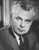 St. Laurent resigned as leader of the Liberal Party on September 5, 1957, but agreed to stay on until a successor was elected. With a lame-duck leader, the Liberals were ineffective in opposition.[128] Paul Martin stated that "I'm sure I never thought the day would come when [Diefenbaker] would ever be a member of a government, let alone head of it. When that happened, the world had come to an end as far as I was concerned."[129] In January 1958, St. Laurent was succeeded by Lester Pearson.[130]