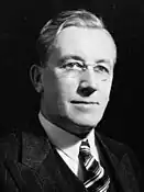 The Tories had last governed Canada under R.B. Bennett, who had been elected in 1930.[2] Bennett's government had limited success in dealing with the Depression, and was defeated in 1935, as Liberal William Lyon Mackenzie King, who had previously served two times as Prime Minister, was restored to power.[3] The Liberals won five consecutive elections between 1935 and 1953, four of the victories resulting in powerful majority governments. The Liberals worked closely with the civil service (drawing several of their ministers from those ranks) and their years of dominance saw prosperity.[4]