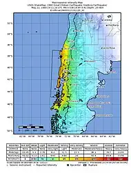 - "M 9.5 - 1960 Great Chilean Earthquake (Valdivia Earthquake)-USGS". USGS ShakeMap. Retrieved 21 September 2023.