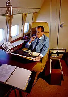 In July 1971, President Nixon's National Security Advisor Henry Kissinger secretly visited Beijing during a trip to Pakistan, and laid the groundwork for Nixon's visit to China. This meeting was arranged and facilitated by Pakistan through its strong diplomatic channels with China.[11][12] Transcripts of White House meetings and once confidential documents show Nixon began working to open a channel of communication with Beijing from his first day in the White House.[13] For this ambitious goal to be reached President Nixon had carried out a series of carefully calibrated moves through Communist China's allies Romania and Pakistan.[14]