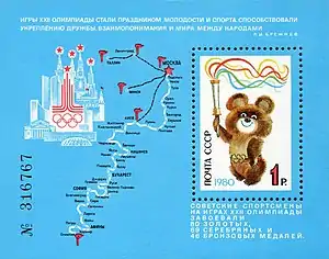 The 1980 Summer Olympics (Russian: Летние Олимпийские игры 1980, romanized: Letnije Olimpijskije igry 1980), officially known as the Games of the XXII Olympiad (Russian: Игры XXII Олимпиады, romanized: Igry XXII Olimpiady) and commonly known as Moscow 1980 (Russian: Москва 1980, romanized: Moskva 1980), were an international multi-sport event held from 19 July to 3 August 1980 in Moscow, Soviet Union, in present-day Russia.[2][3] The games were the first to be staged in an Eastern Bloc country, as well as the first Olympic Games and only Summer Olympics[lower-alpha 2] to be held in a Slavic language-speaking country. They were also the only Summer Olympic Games to be held in a socialist state until the 2008 Summer Olympics held in China. These were the final Olympic Games under the IOC Presidency of Michael Morris, 3rd Baron Killanin before he was succeeded by Juan Antonio Samaranch, a Spaniard, shortly afterwards.[4]
