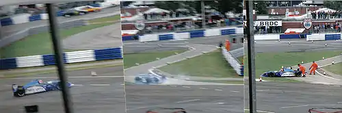 Similarly, BBC commentator and former driver, Jonathan Palmer, said that Hill's manoeuvre was the result of "a rush of blood to the head".[50] Journalist Joe Saward was amongst those who speculated, however, that Schumacher had played a role in the collision by taking a wider line into the Priory corner than usual, and thus encouraging Hill to attempt the manoeuvre.[51] The incident was subject to a stewards' investigation, which resulted in both drivers being given a severe reprimand and a warning that "future similar actions may result in severe penalties".[39][49][52] The collision overshadowed the fact that, in the opinion of Roebuck, Benetton had again chosen a better race strategy than Williams, and that Schumacher would have had a comfortable lead had he not been stuck behind Alesi in the early stages of the race.[47] There was also similar ill-feeling between Barrichello and Blundell after their collision on lap 60. Barrichello accused Blundell of brake-testing him prior to the incident, and of causing the crash by changing his driving line too quickly, whilst Blundell denied the allegations and drew attention to Barrichello's similar collision with Häkkinen the previous year.[53] The stewards also investigated this incident and gave Blundell a severe reprimand for his actions.[54]