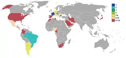 ![]() Countries qualified for World Cup Country did not qualify Countries that did not enter World Cup Country not a FIFA member