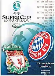 The 2001 UEFA Super Cup was a football match between German team Bayern Munich and English team Liverpool on 24 August 2001 at Stade Louis II, the annual UEFA Super Cup contested between the winners of the UEFA Champions League and UEFA Cup. Bayern were appearing in the Super Cup for the third time, their two previous appearances in 1975 and 1976 had ended in defeat. Liverpool were appearing in their fourth Super Cup, they won the competition in 1977, and lost twice in 1978 and 1984.