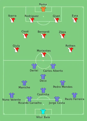 13. "Tactical Line-ups – Final – Wednesday 26 May 2004" (PDF). UEFA. 26 May 2004. Retrieved 29 December 2017.