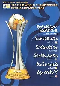 The 2005 FIFA Club World Championship final was an association football match played between São Paulo of Brazil, the CONMEBOL club champions, and Liverpool of England, the UEFA club champions, on 18 December 2005 at the International Stadium Yokohama, Japan. It was the final match of the 2005 FIFA Club World Championship, a competition for the winners of the primary cup competitions of FIFA's continental members. The Club World Championship replaced the Intercontinental Cup, which both teams had competed in before. São Paulo had won the Intercontinental Cup twice in 1992 and 1993, while Liverpool had lost twice in 1981 and 1984.