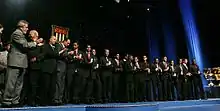 Before the start of the match, a minute's silence was held, in memory of Rafa Benítez's father Francisco who died of heart failure on the Wednesday before the final. Both teams took the pitch wearing black armbands as a mark of respect.[10] The match was delayed further when a fan invaded the pitch, he headed for one of the goals and got stuck in the goal before being caught.[11] São Paulo lined up in a 3–5–2 formation, while Liverpool opted for a 4–4–1–1 formation.[12] Liverpool had the first chance of the match inside the opening 79 seconds. Liverpool captain Steven Gerrard's cross into the penalty area was met by Fernando Morientes, but the striker headed wide of the goal. Liverpool created more chances with Luis García missing the goal twice from headers.[13] São Paulo had only created one chance, a shot from striker Amoroso, but they began to grow in confidence. They pressed forward after Amoroso's shot and defender Cicinho nearly scored with a lob from the halfway line which just went over the crossbar.[14]